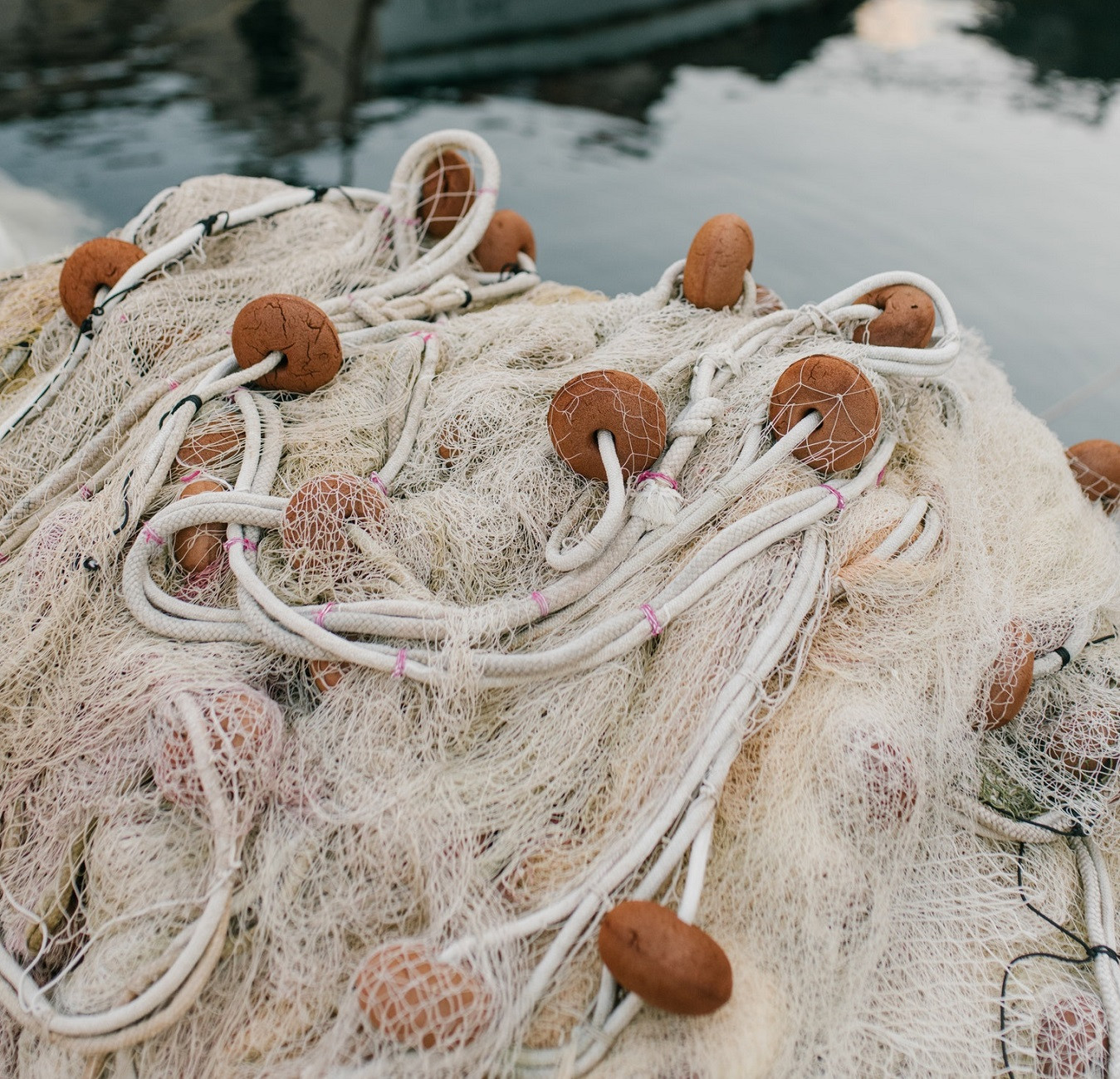 •Single-material waste nylon fishing nets are melted and re-spinned for physical recovery.