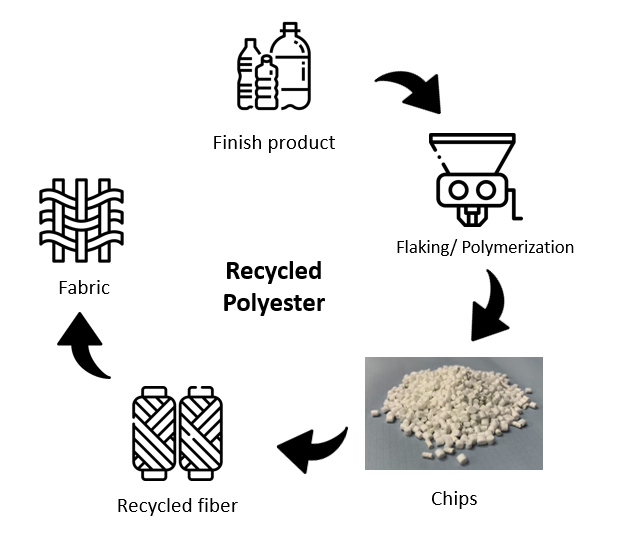 Recycled polyester is the most common recycled man-made fiber. It makes the consumer waste into recycled fiber.