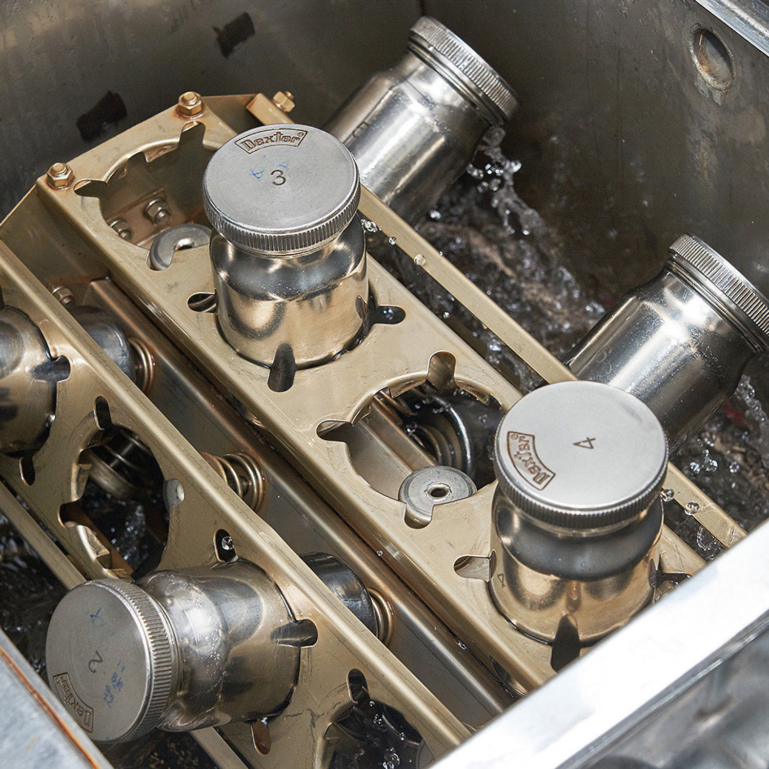 The test continues for 45 minutes. In each container, there are several steel balls and small fabric pieces.