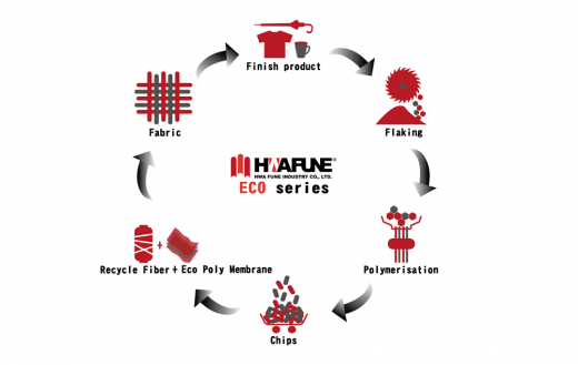 Both the PP membrane developed by Phoenix Innovative Materials and the Porlite fabric created by HWAFUNE are manufactured inTaiwan. Thanks to their insistence on domestic production, the companies have established a high-tech brand image for Taiwanese textile companies widely recognized by overseas esteemed customers. These are valuable experiences for both Phoenix Innovative Materials and HWAFUNE.