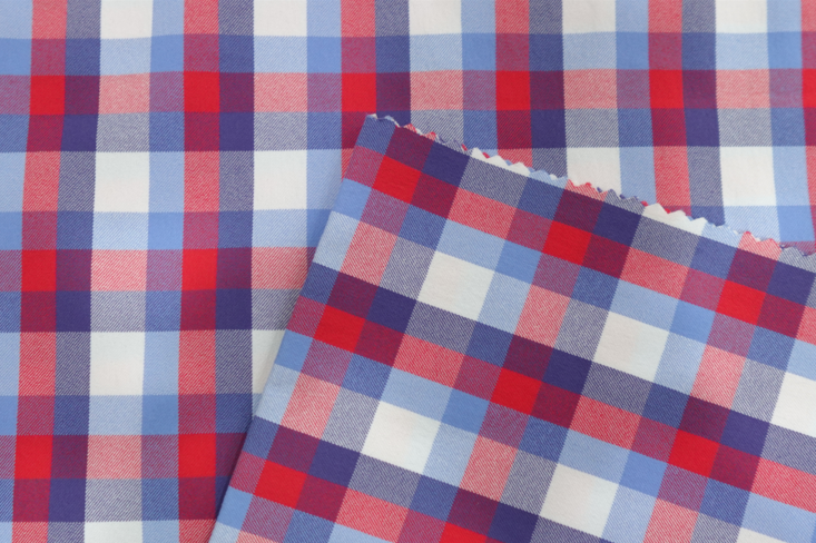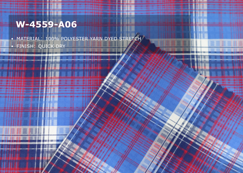 Yarn-dyed fabric refers to textiles woven from pre-dyed yarns, allowing precise color placement and pattern definition at the structural level. This method differs from piece dyeing, where color is applied after the fabric is woven. Yarn-dyed constructions are commonly used for patterns such as gingham checks, dobby weaves, and some plaids, offering enhanced colorfastness, visual depth, and design clarity. W-4549-A06