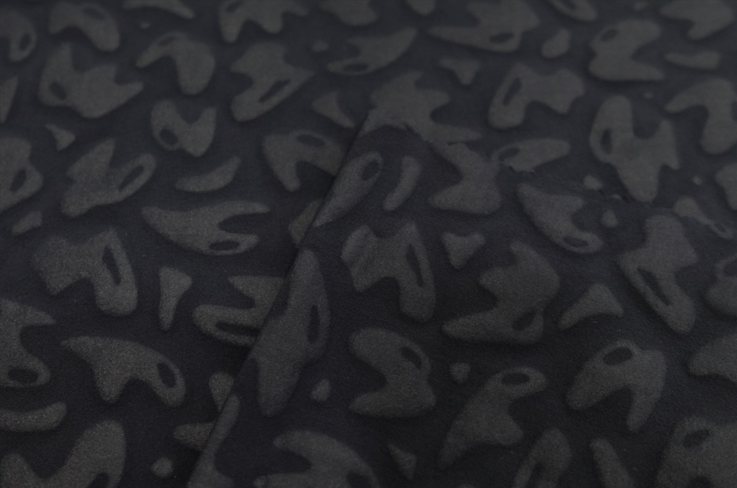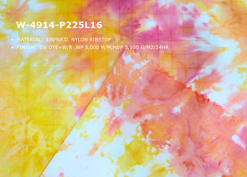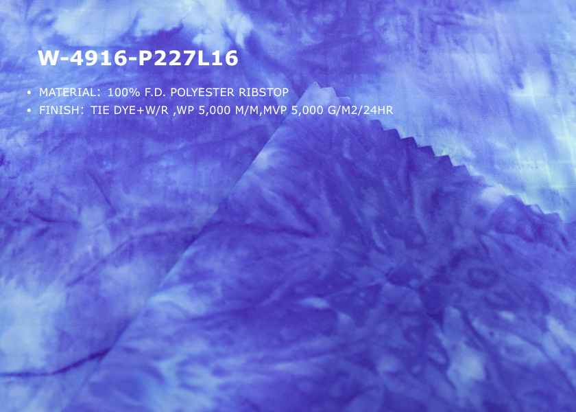 Tie-dyed fabric is a resist-dyeing technique that produces a broad range of patterns, from recognizable motifs such as spirals, diamonds, and marble effects to more complex, artistic surface designs. It offers visual unpredictability and unique aesthetics, often used in conceptual or limited-edition textile applications. W-4670-P253A06