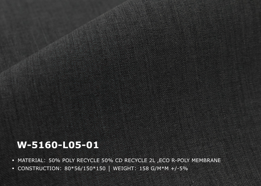 This material is produced by chemically depolymerizing recycled polyester (rPET) into its monomers, which are then re-polymerized into ECO r-POLY.